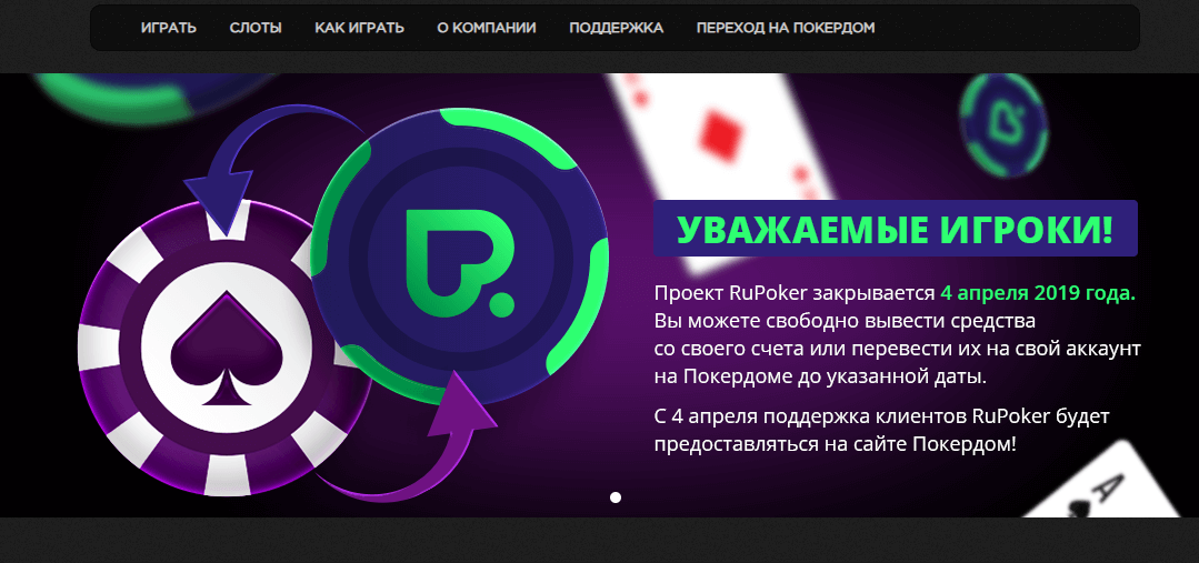 RuPoker прекратит работу с 4 апреля 2019 года